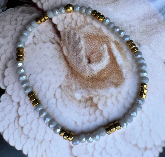 Pretty bracelet with crystal beads and little round golden nuggets