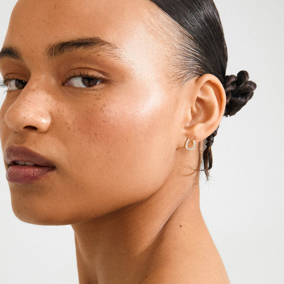 - Horseshoe-shaped earrings with an understated, glamorous touch