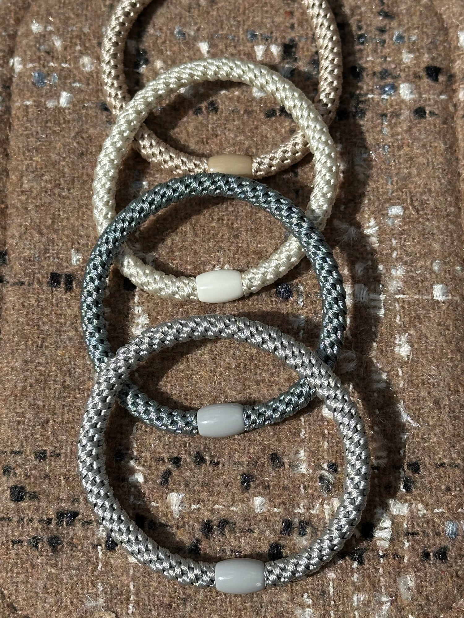Supreme hair ties - elasticated using only the very best quality and yarn. Have them to hand by wearing on your wrist and mix colours to your days outfit. They come in handy when you want to tie your hair up.