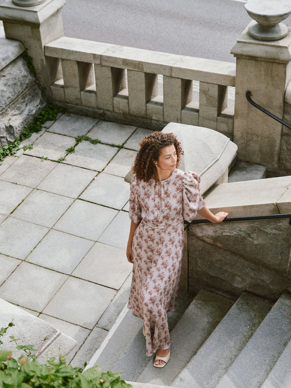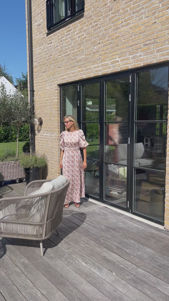 A stunning piece - summer dress for all occasions - Really pretty and very flattering with short sleeves and round neck at the front.