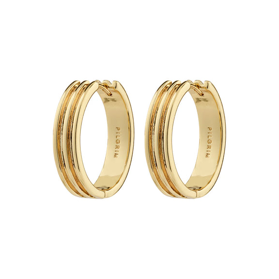 Simplicity is the keynote of elegance, and the new BENNETT earrings from Pilgrim show it in style. Here's a set of wide gold-plated hoops in a classic design that combines simplicity with an edge of Scandi coolness. With a monochrome design that has a fresh urban touch and an easy-to-use click clasp, they're sure to become an all-time favourite. Made from 99% recycled materials, they're a styling choice you can be proud of.