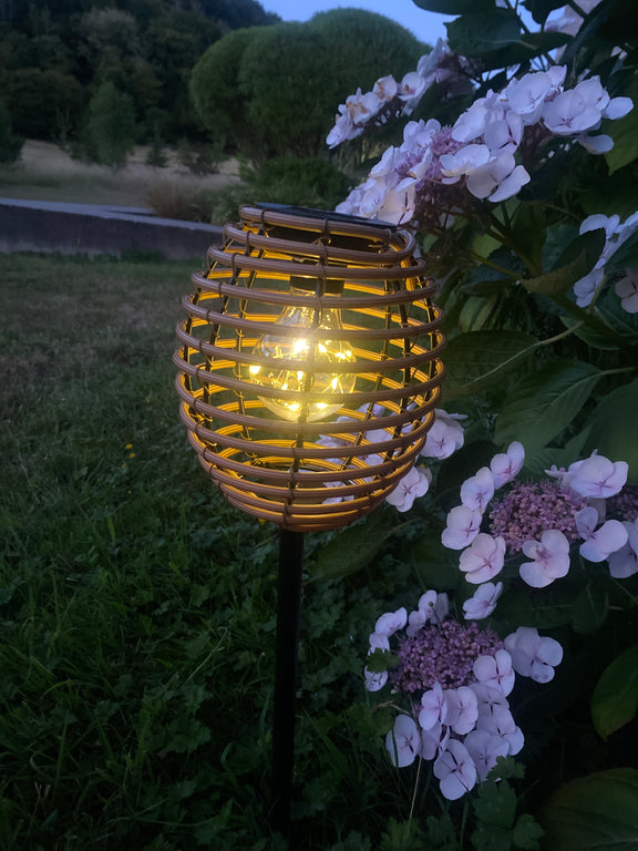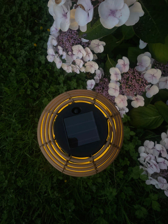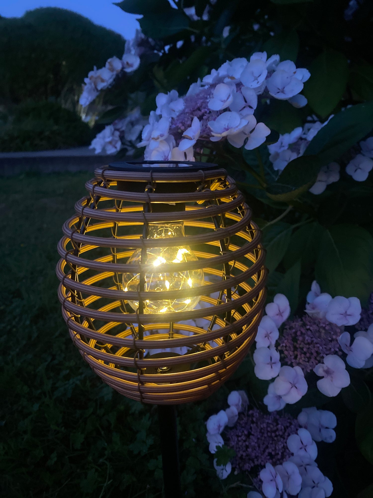 Solar powered lantern. Will only light when its dark. Have them randomly placed in your garden and let them power up during the day and give ambience in the night.
