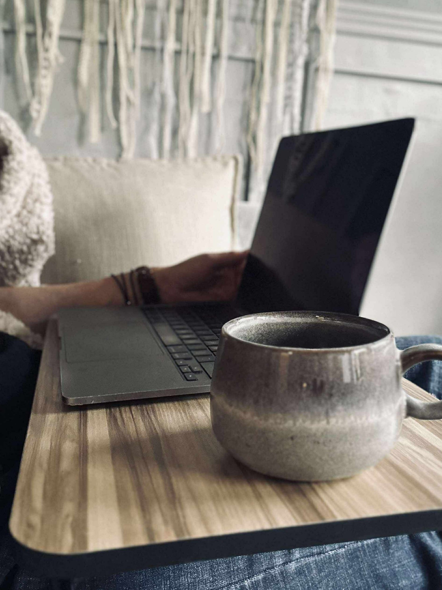 Serving tray / working station - simply fold and store easily when not in use. Space for IPAD or phone.