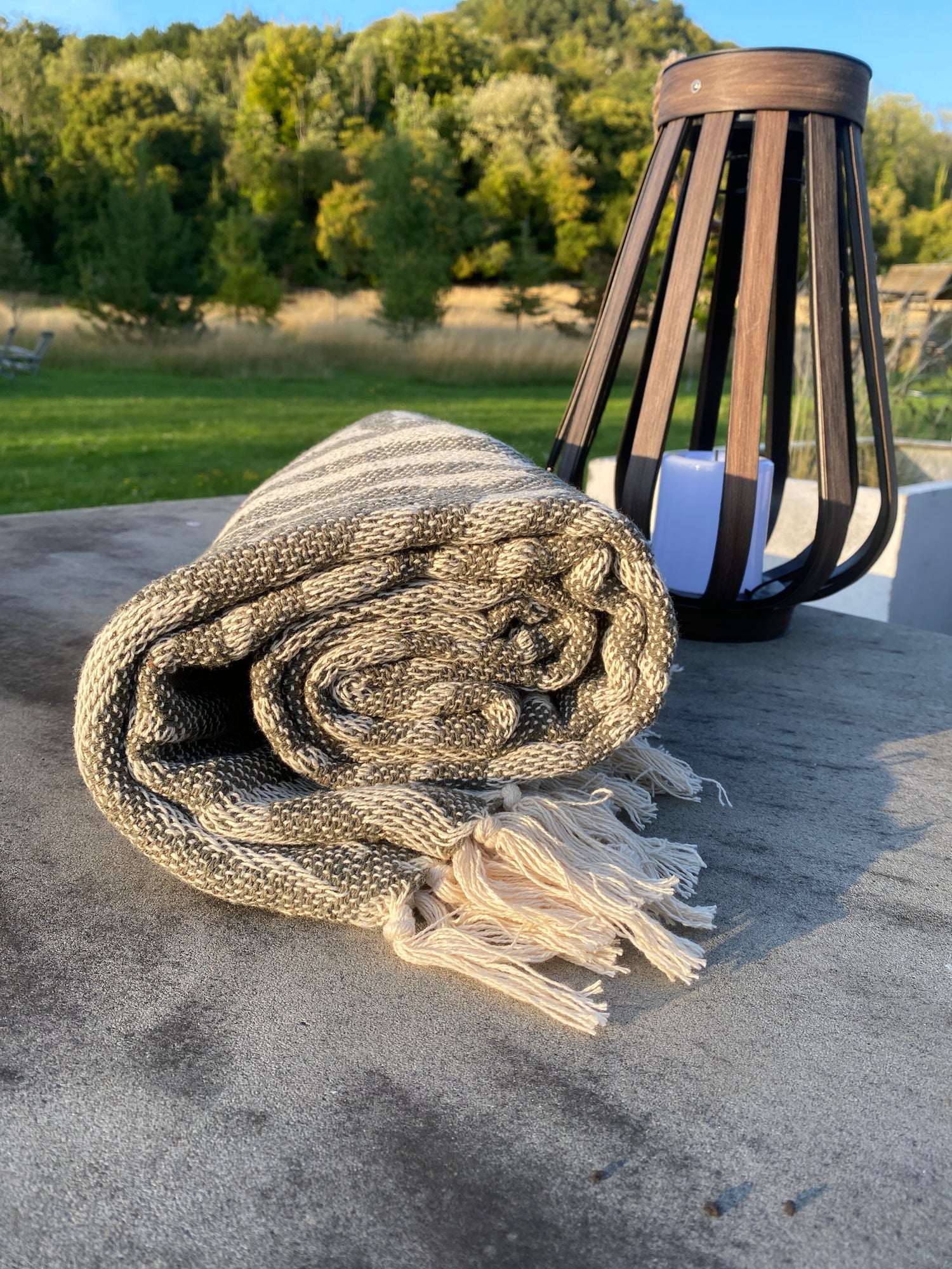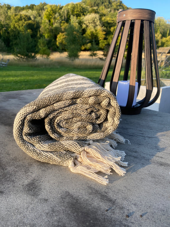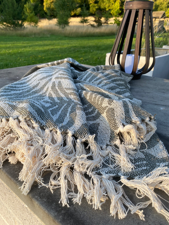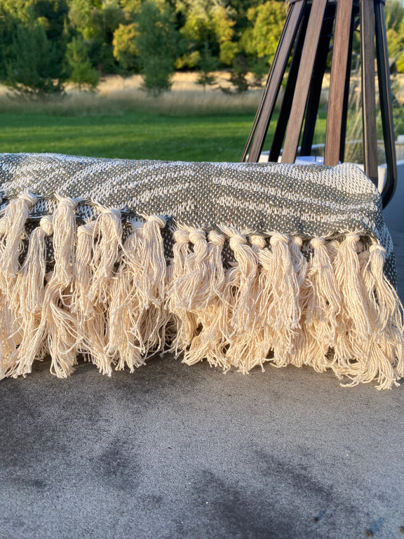 Lovely two tone cotton throw with tassel detail. Ideal for indoor or outdoor use.